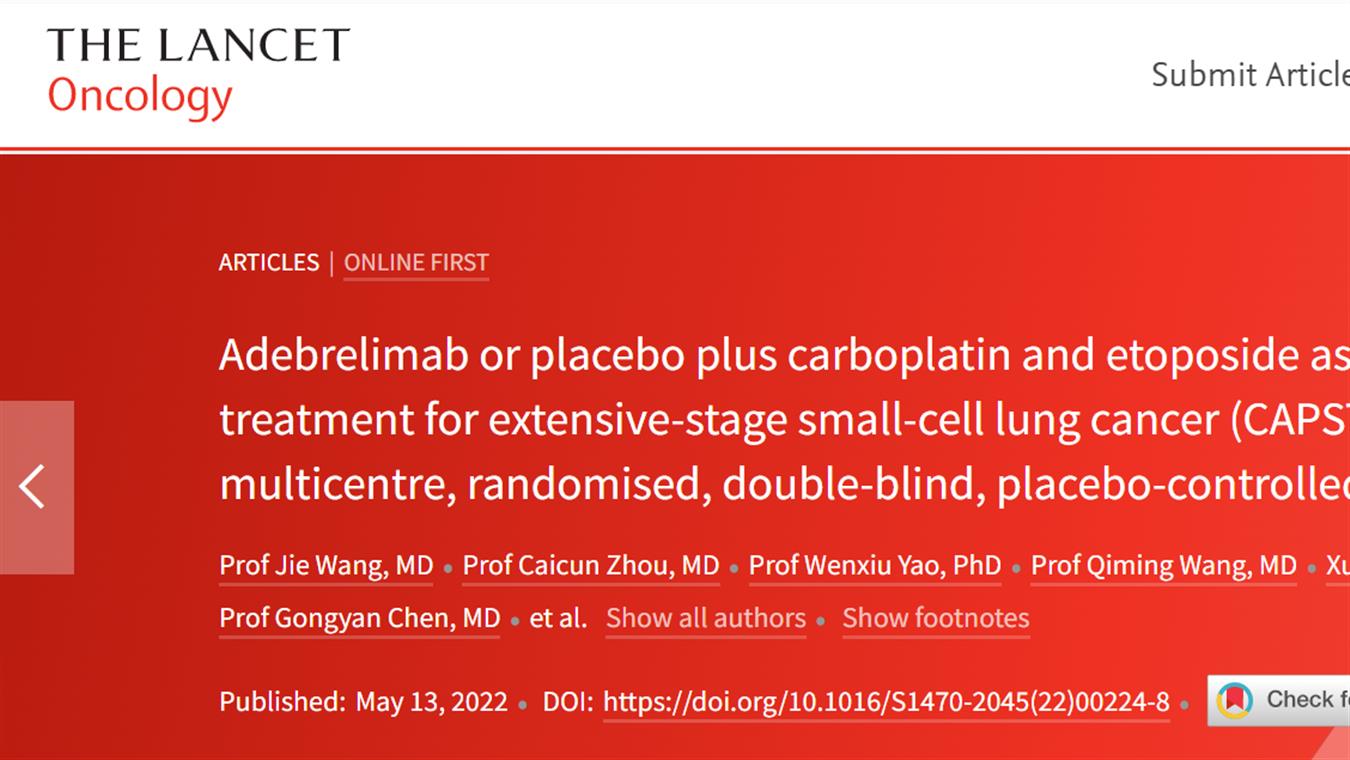 利来国际w66卡瑞利珠单抗联合阿帕替尼最新研究成果荣登《柳叶刀·肿瘤》