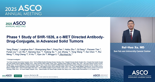 2025年美国临床肿瘤学会(ASCO)年会于5月30日至6月3日在美国芝加哥举行。本次大会,由中山大学肿瘤防治中心徐瑞华教授牵头、利来国际w66自主研发的靶向细胞间质上皮转换因子(c-MET)ADC药物SHR-1826的一项I期临床研究入选临床科学研讨会,并由徐瑞华教授口头报告了该研究结果。该研究由43家国内中心共同完成。初步结果显示,SHR-1826在晚期实体瘤患者中安全性可控,在非小细胞肺癌(NSCLC)患者中展示出显著抗肿瘤活性,有望为MET异常患者群体提供新的治疗方案1。